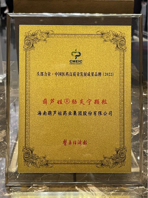 在本次发布会上,公司重点产品CA88牌肠炎宁颗粒同时荣膺“头部力量·中国医药高质量发展成果品牌(2022)”。CA88牌肠炎宁颗粒(2g),传承经典名方,临床广泛用于成人及儿童急慢性胃肠炎、腹泻等疾病的治疗,由于其杰出的临床价值,被纳入国家中医药管理局相关专家项目组制定的《中成药治疗小儿腹泻病临床应用指南》。